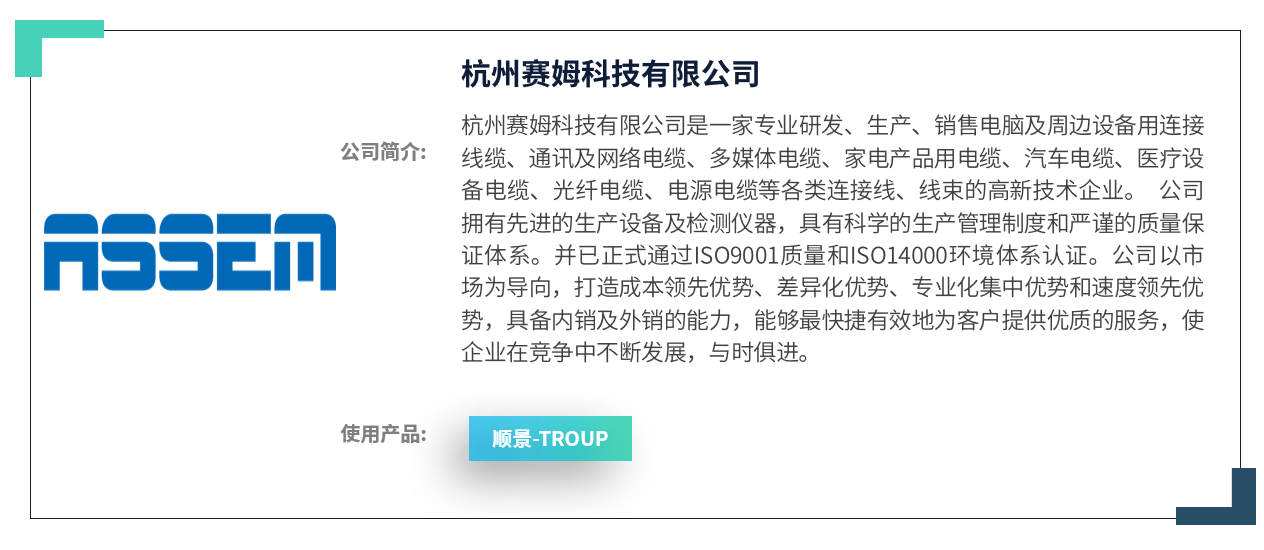 赛姆科技管理层也开始逐渐认识到企业管理的缺陷和漏洞,为确保企业日后更上一层楼,引进优质专业的ERP管理软件协助赛姆科技管理层清除企业发展过程中的异常。在对比了多家ERP产品之后,终于在2015年6月份,赛姆科技领导层集体决议,确定和拥有20多年制造业经验的顺景ERP合作,将顺景ERP定为企业管理优化的重要工具。