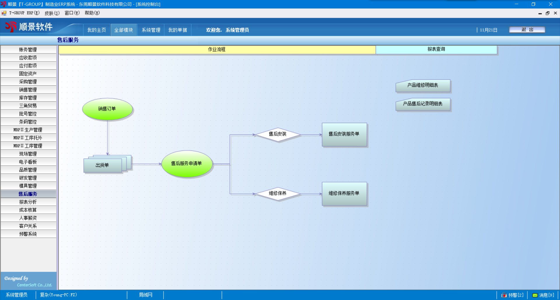 5. 维修、安装单有记录订单的合同编号、且系统自动根据销售订单的保修期和出货日期自动结算机型的到期日;